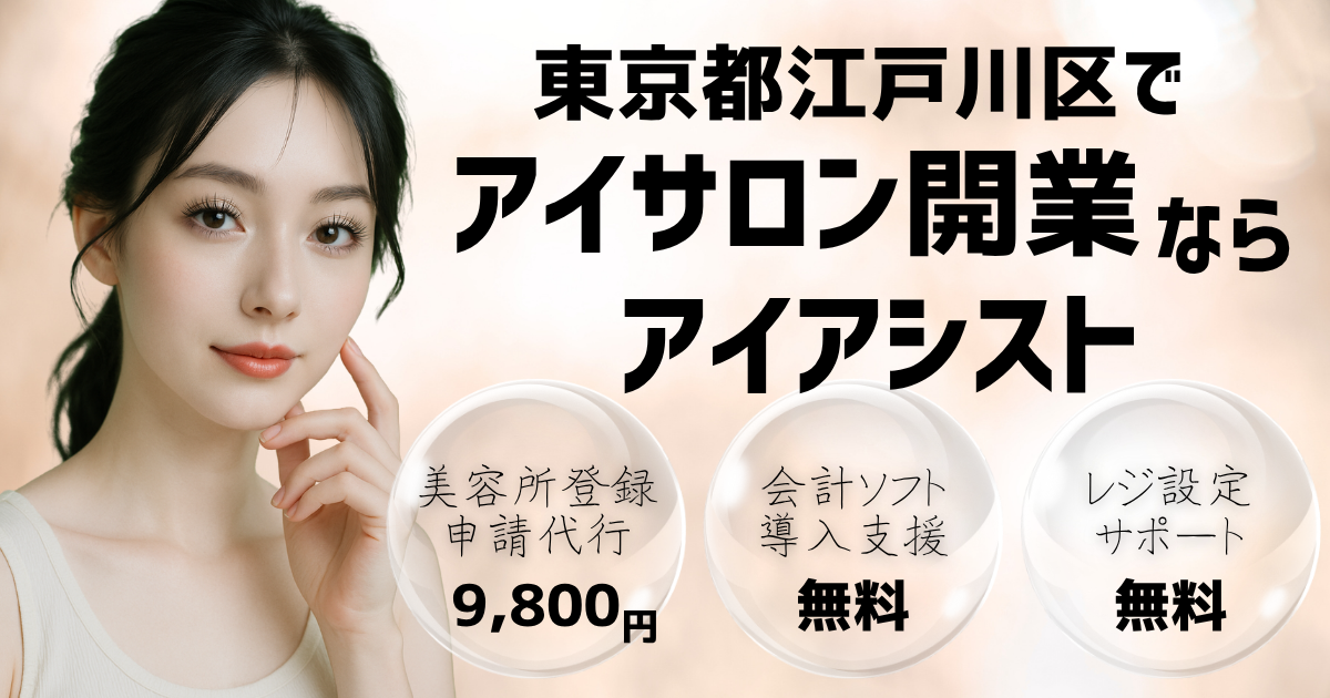 このページでは東京都江戸川区でアイサロンを開業したいと考えているアイリストさん向けに、アイサロン開業サポートや美容所登録申請について解説しています。